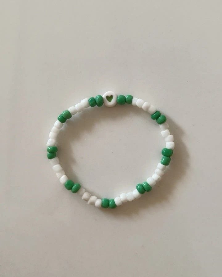 Green and white heart bracelet